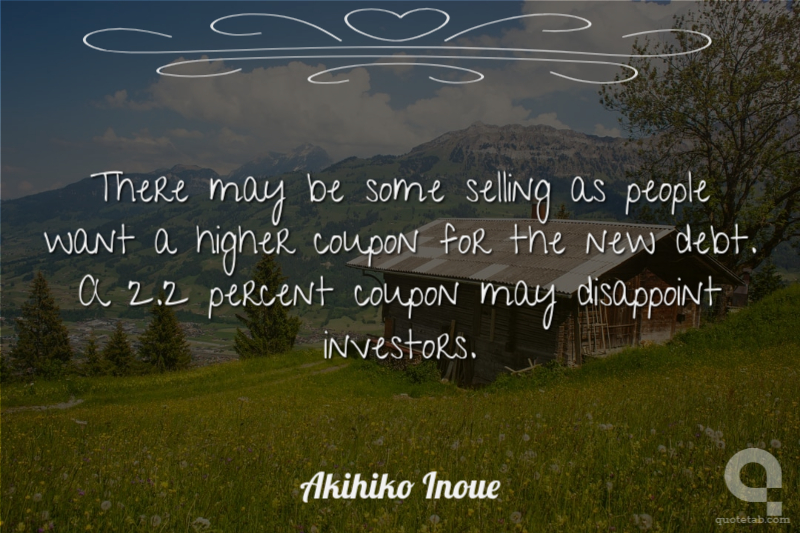 There may be some selling as people want a higher coupon for the new debt. A 2.2 percent coupon may disappoint investors.