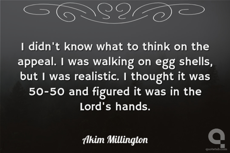 I didn't know what to think on the appeal. I was walking on egg shells, but I was realistic. I thought it was 50-50 and figured it was in the Lord's hands.
