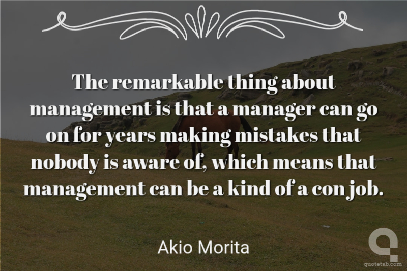 The remarkable thing about management is that a manager can go on for years making mistakes that nobody is aware of, which means that management can be a kind of a con job.