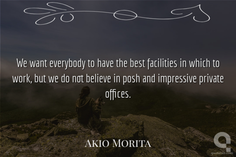 We want everybody to have the best facilities in which to work, but we do not believe in posh and impressive private offices.