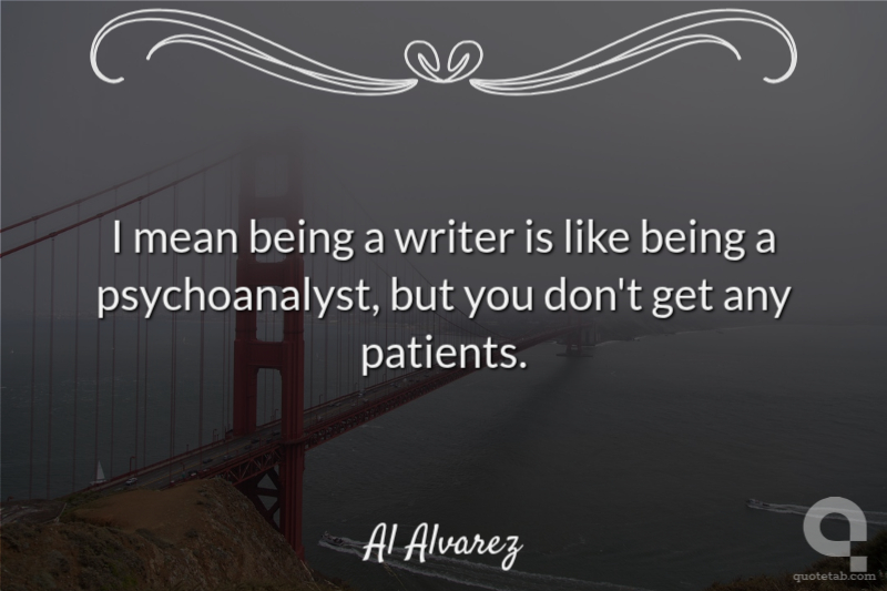 I mean being a writer is like being a psychoanalyst, but you don't get any patients.
