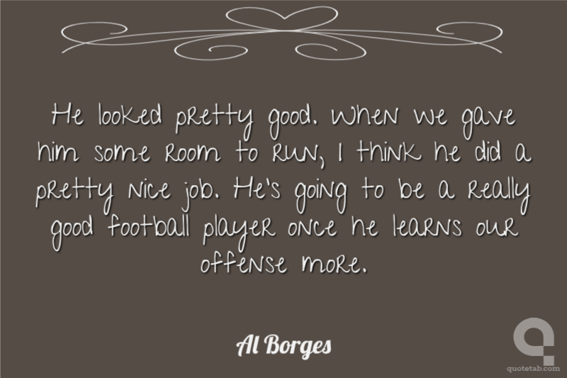 He looked pretty good. When we gave him some room to run, I think he did a pretty nice job. He's going to be a really good football player once he learns our offense more.