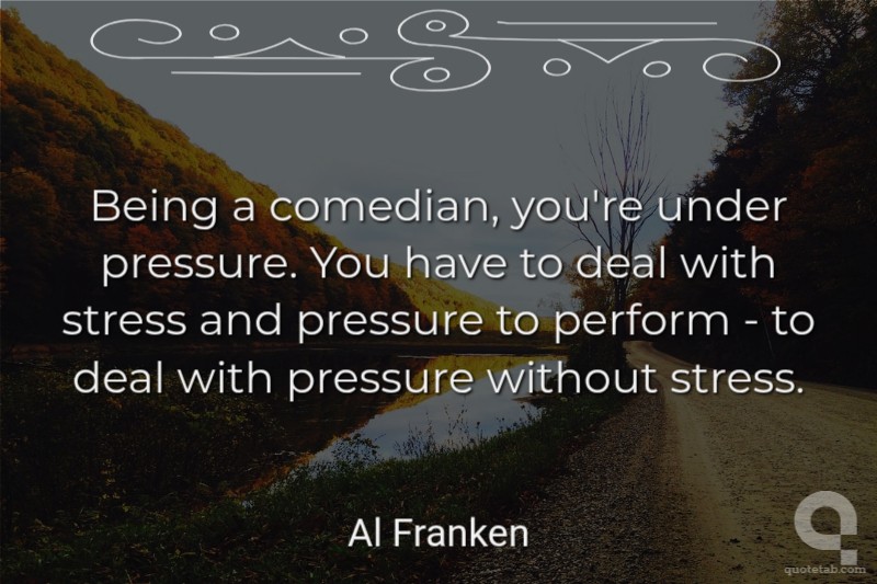 Being a comedian, you're under pressure. You have to deal with stress and pressure to perform - to deal with pressure without stress.