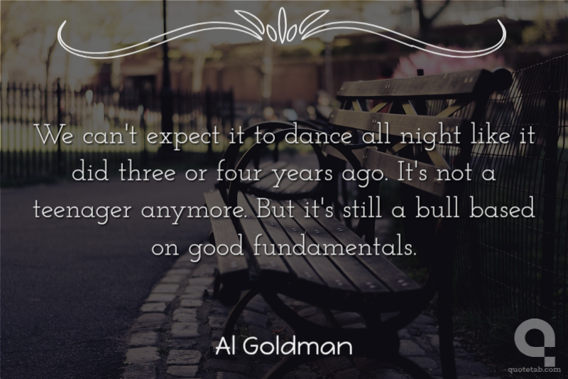 We can't expect it to dance all night like it did three or four years ago. It's not a teenager anymore. But it's still a bull based on good fundamentals.