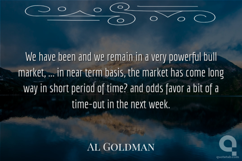 We have been and we remain in a very powerful bull market, ... in near term basis, the market has come long way in short period of time? and odds favor a bit of a time-out in the next week.