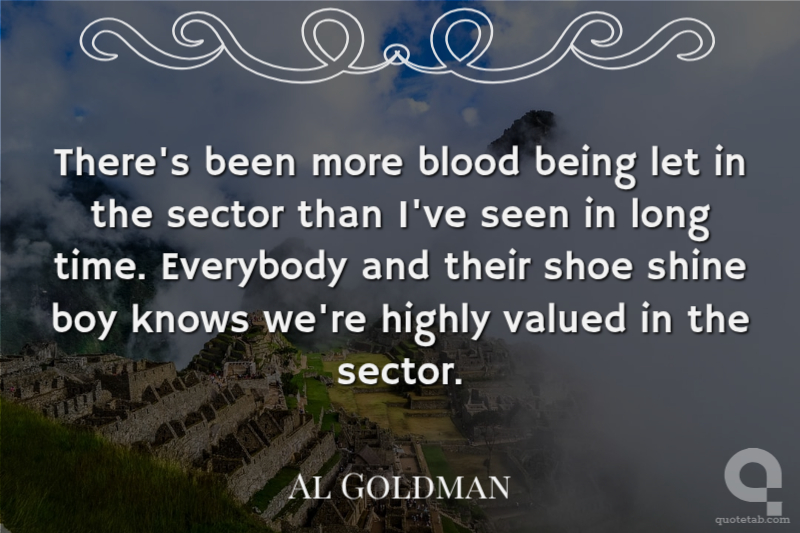 There's been more blood being let in the sector than I've seen in long time. Everybody and their shoe shine boy knows we're highly valued in the sector.