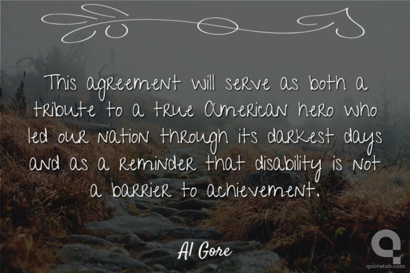 This agreement will serve as both a tribute to a true American hero who led our nation through its darkest days and as a reminder that disability is not a barrier to achievement.