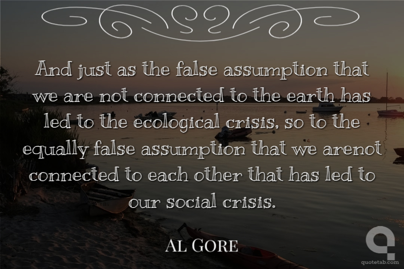 And just as the false assumption that we are not connected to the earth has led to the ecological crisis, so to the equally false assumption that we arenot connected to each other that has led to our social crisis.