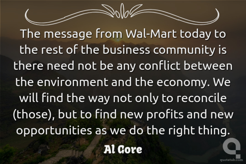 The message from Wal-Mart today to the rest of the business community is there need not be any conflict between the environment and the economy. We will find the way not only to reconcile (those), but to find new profits and new opportunities as we do the right thing.