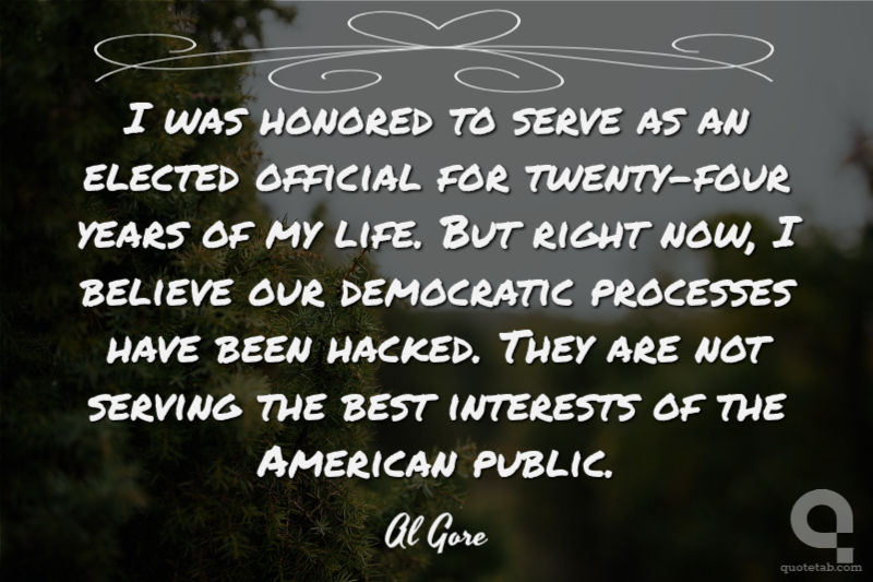 I was honored to serve as an elected official for twenty-four years of my life. But right now, I believe our democratic processes have been hacked. They are not serving the best interests of the American public.