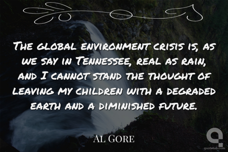 The global environment crisis is, as we say in Tennessee, real as rain, and I cannot stand the thought of leaving my children with a degraded earth and a diminished future.