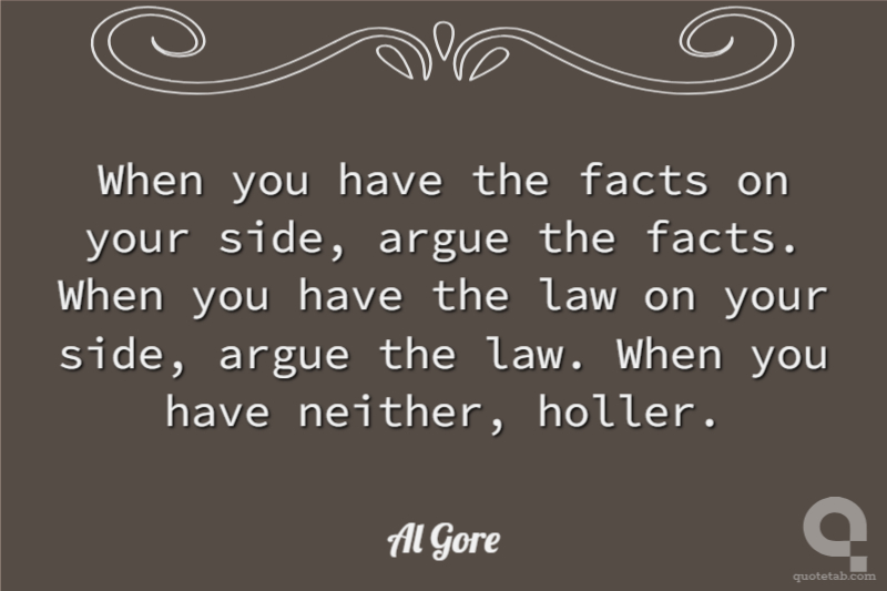 When you have the facts on your side, argue the facts. When you have the law on your side, argue the law. When you have neither, holler.