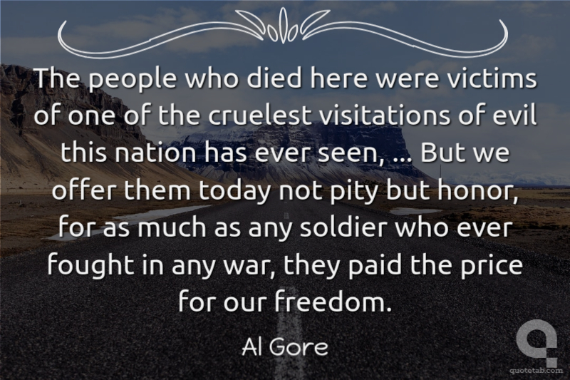 The people who died here were victims of one of the cruelest visitations of evil this nation has ever seen, ... But we offer them today not pity but honor, for as much as any soldier who ever fought in any war, they paid the price for our freedom.