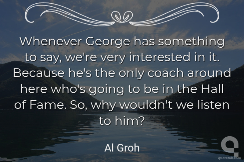 Whenever George has something to say, we're very interested in it. Because he's the only coach around here who's going to be in the Hall of Fame. So, why wouldn't we listen to him?