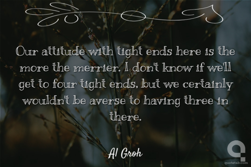 Our attitude with tight ends here is the more the merrier. I don't know if we'll get to four tight ends, but we certainly wouldn't be averse to having three in there.