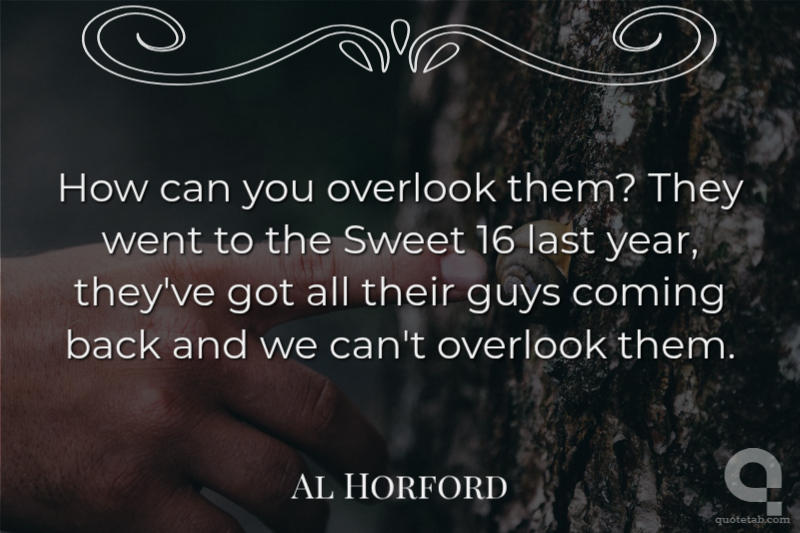 How can you overlook them? They went to the Sweet 16 last year, they've got all their guys coming back and we can't overlook them.