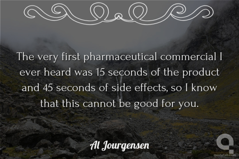 The very first pharmaceutical commercial I ever heard was 15 seconds of the product and 45 seconds of side effects, so I know that this cannot be good for you.