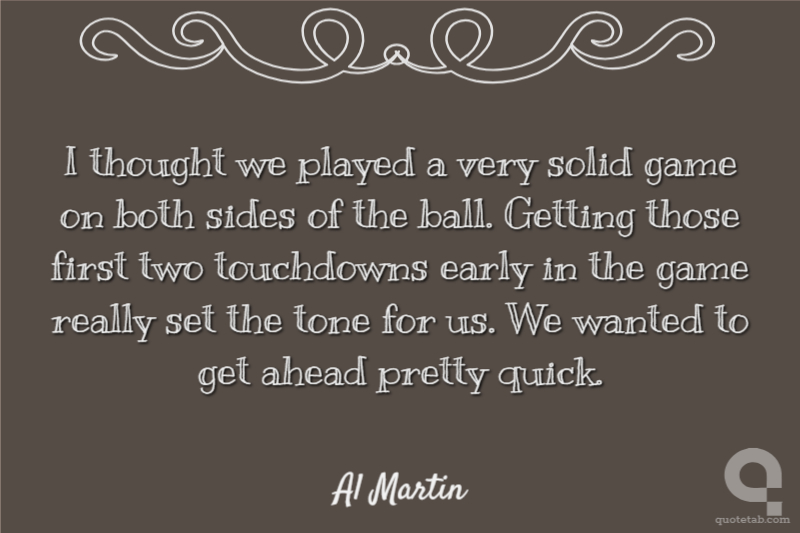 I thought we played a very solid game on both sides of the ball. Getting those first two touchdowns early in the game really set the tone for us. We wanted to get ahead pretty quick.
