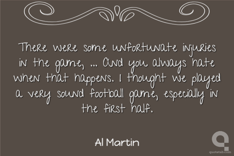 There were some unfortunate injuries in the game, ... And you always hate when that happens. I thought we played a very sound football game, especially in the first half.