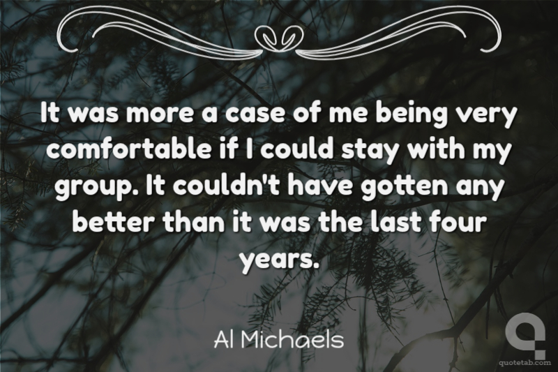 It was more a case of me being very comfortable if I could stay with my group. It couldn't have gotten any better than it was the last four years.