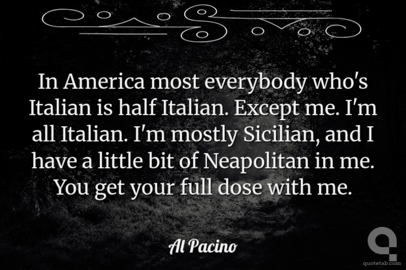 In America most everybody who's Italian is half Italian. Except me. I'm all Italian. I'm mostly Sicilian, and I have a little bit of Neapolitan in me. You get your full dose with me.