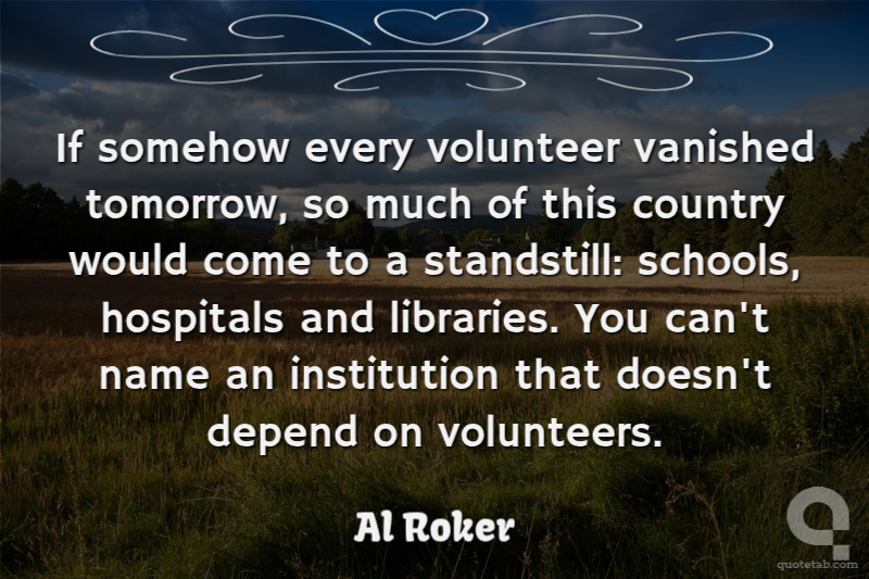 If somehow every volunteer vanished tomorrow, so much of this country would come to a standstill: schools, hospitals and libraries. You can't name an institution that doesn't depend on volunteers.