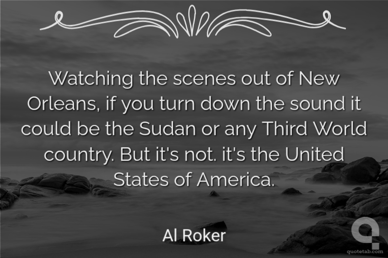 Watching the scenes out of New Orleans, if you turn down the sound it could be the Sudan or any Third World country. But it's not. it's the United States of America.
