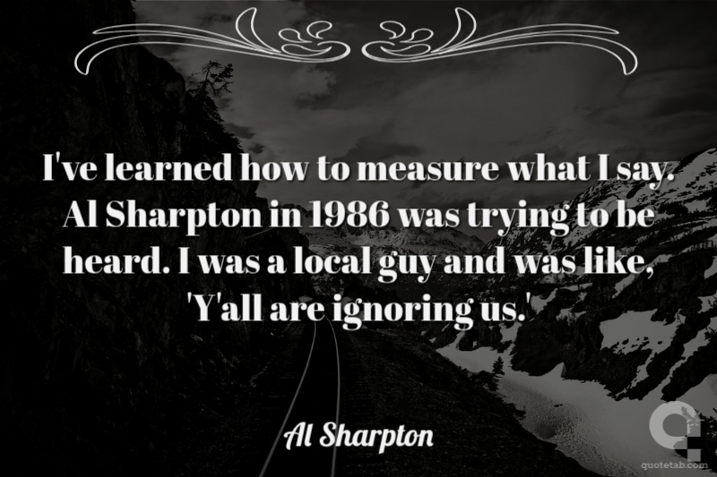 I've learned how to measure what I say. Al Sharpton in 1986 was trying to be heard. I was a local guy and was like, 'Y'all are ignoring us.'