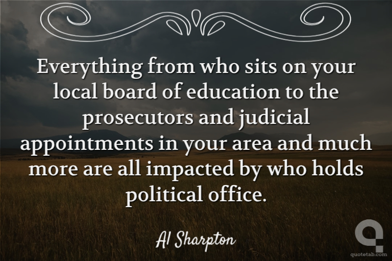 Everything from who sits on your local board of education to the prosecutors and judicial appointments in your area and much more are all impacted by who holds political office.