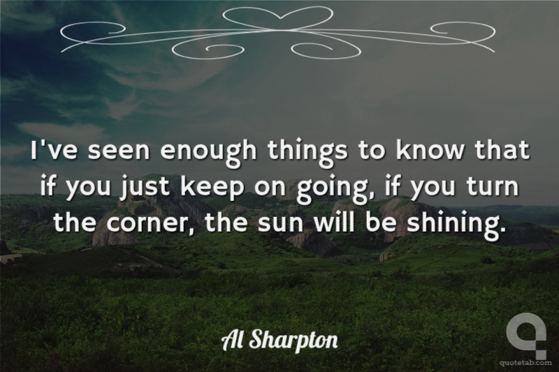 I've seen enough things to know that if you just keep on going, if you turn the corner, the sun will be shining.