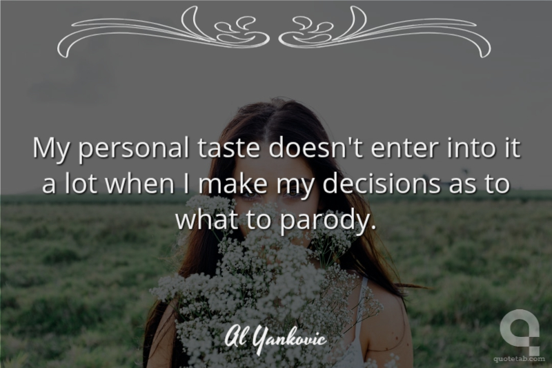 My personal taste doesn't enter into it a lot when I make my decisions as to what to parody.
