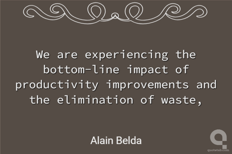 We are experiencing the bottom-line impact of productivity improvements and the elimination of waste,