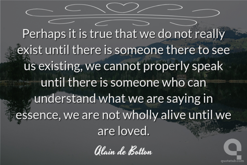 Perhaps it is true that we do not really exist until there is someone there to see us existing, we cannot properly speak until there is someone who can understand what we are saying in essence, we are not wholly alive until we are loved.