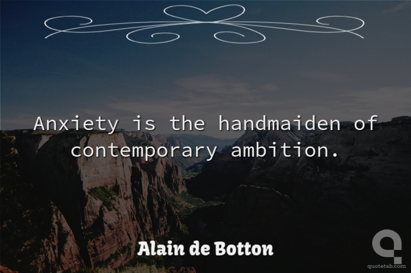Life seems to be a process of replacing one anxiety with another and substituting one desire for another--which is not to say that we should never strive to overcome any of our anxieties or fulfil any of our desires, but rather to suggest that we should perhaps build into our strivings an awareness of the way our goals promise us a respite and a resolution that they cannot, by definition, deliver.