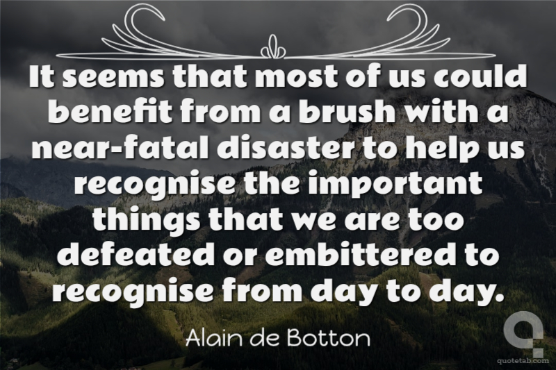 It seems that most of us could benefit from a brush with a near-fatal disaster to help us recognise the important things that we are too defeated or embittered to recognise from day to day.