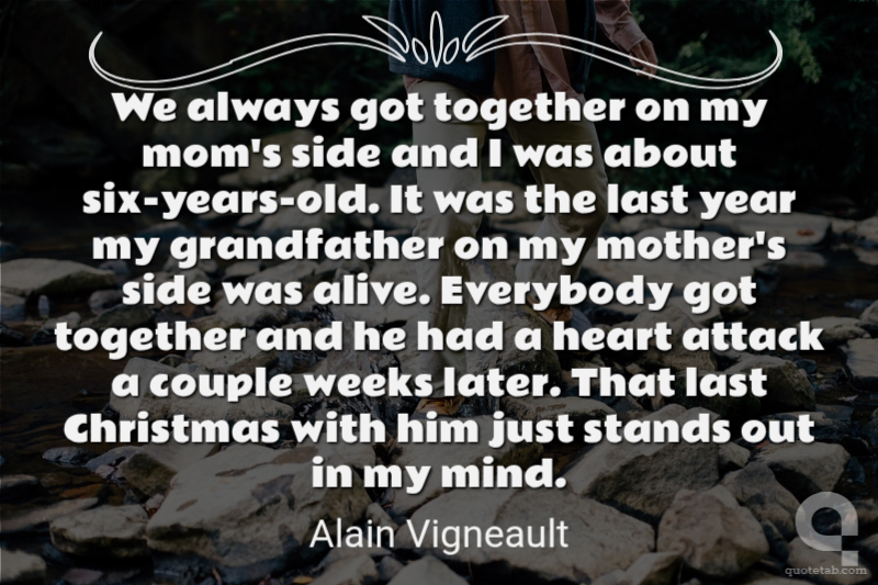 We always got together on my mom's side and I was about six-years-old. It was the last year my grandfather on my mother's side was alive. Everybody got together and he had a heart attack a couple weeks later. That last Christmas with him just stands out in my mind.
