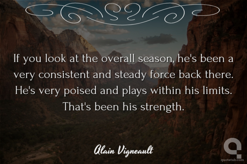 If you look at the overall season, he's been a very consistent and steady force back there. He's very poised and plays within his limits. That's been his strength.