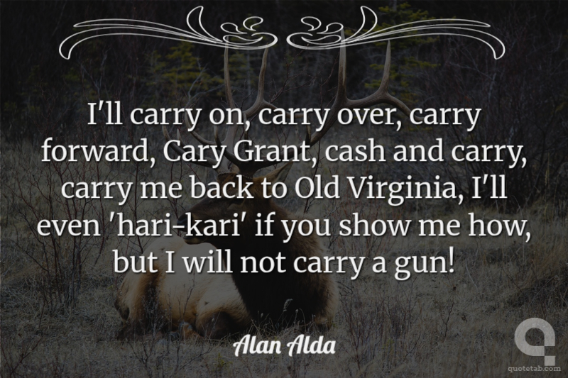 I'll carry on, carry over, carry forward, Cary Grant, cash and carry, carry me back to Old Virginia, I'll even 'hari-kari' if you show me how, but I will not carry a gun!