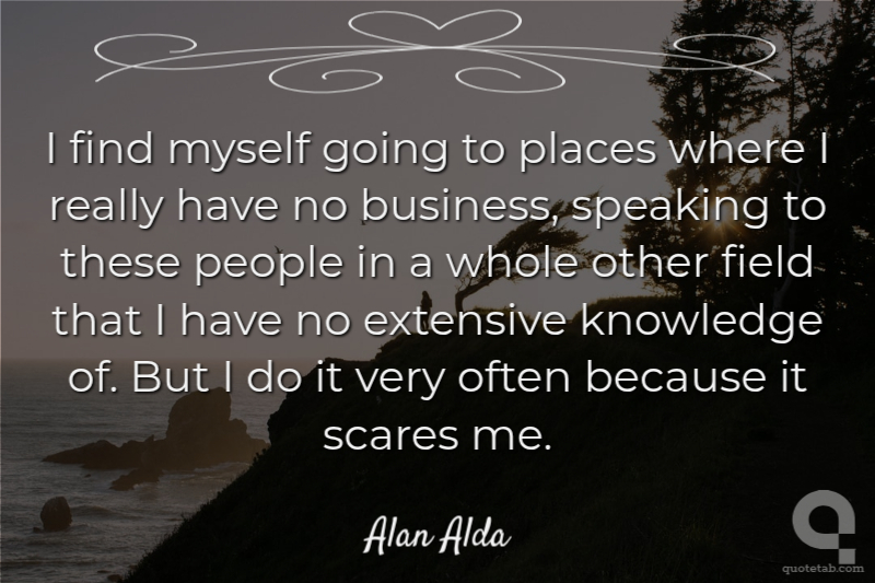 I find myself going to places where I really have no business, speaking to these people in a whole other field that I have no extensive knowledge of. But I do it very often because it scares me.
