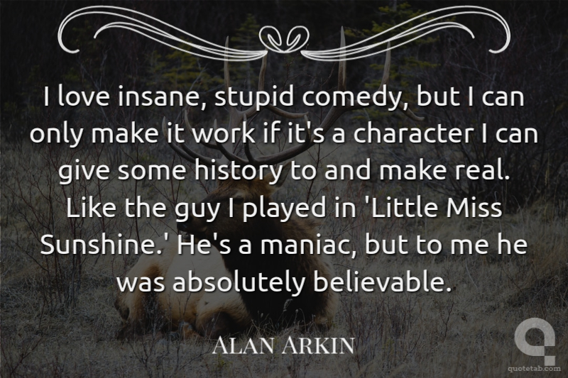 I love insane, stupid comedy, but I can only make it work if it's a character I can give some history to and make real. Like the guy I played in 'Little Miss Sunshine.' He's a maniac, but to me he was absolutely believable.