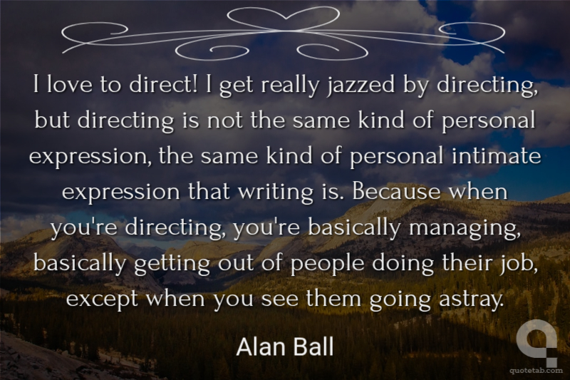 I love to direct! I get really jazzed by directing, but directing is not the same kind of personal expression, the same kind of personal intimate expression that writing is. Because when you're directing, you're basically managing, basically getting out of people doing their job, except when you see them going astray.