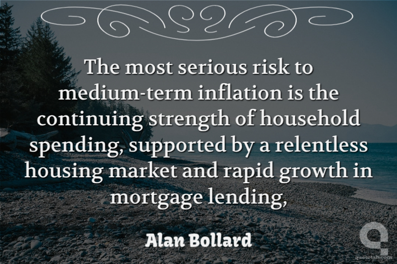 The most serious risk to medium-term inflation is the continuing strength of household spending, supported by a relentless housing market and rapid growth in mortgage lending,