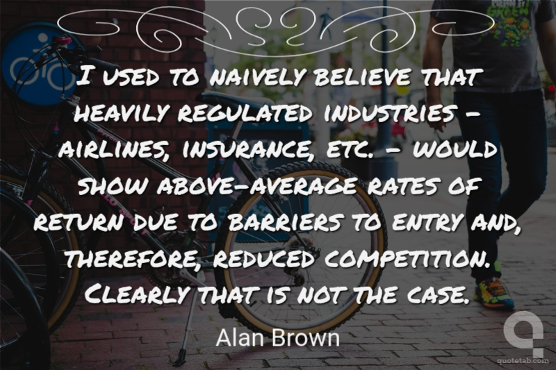 I used to naively believe that heavily regulated industries - airlines, insurance, etc. - would show above-average rates of return due to barriers to entry and, therefore, reduced competition. Clearly that is not the case.
