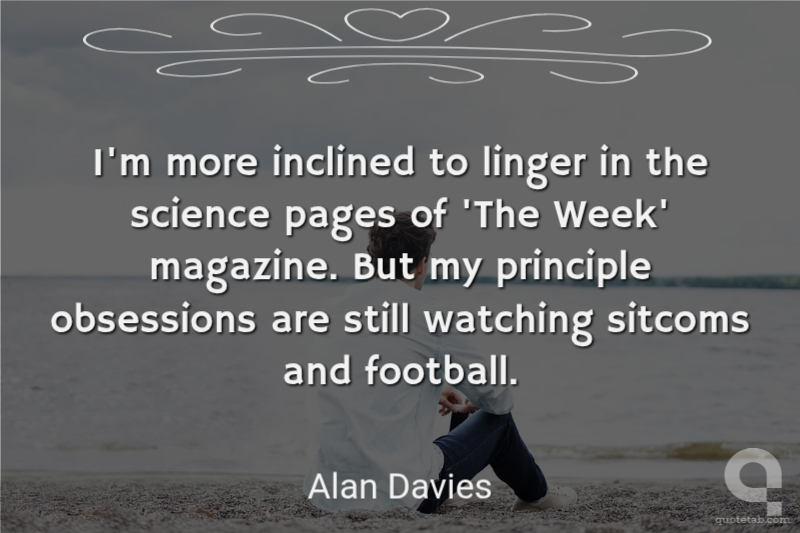 I'm more inclined to linger in the science pages of 'The Week' magazine. But my principle obsessions are still watching sitcoms and football.