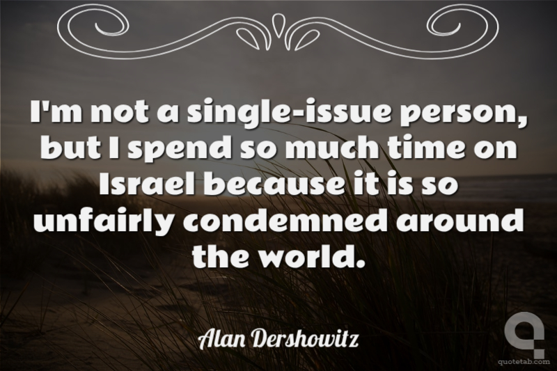 I'm not a single-issue person, but I spend so much time on Israel because it is so unfairly condemned around the world.