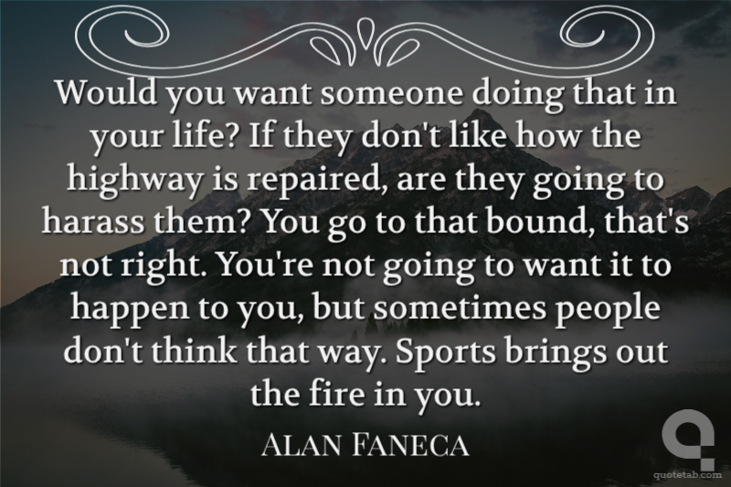 Would you want someone doing that in your life? If they don't like how the highway is repaired, are they going to harass them? You go to that bound, that's not right. You're not going to want it to happen to you, but sometimes people don't think that way. Sports brings out the fire in you.