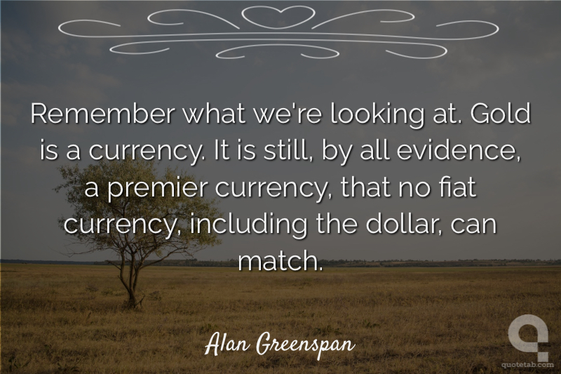 Remember what we're looking at. Gold is a currency. It is still, by all evidence, a premier currency, that no fiat currency, including the dollar, can match.