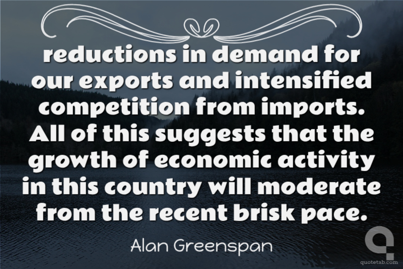 reductions in demand for our exports and intensified competition from imports. All of this suggests that the growth of economic activity in this country will moderate from the recent brisk pace.