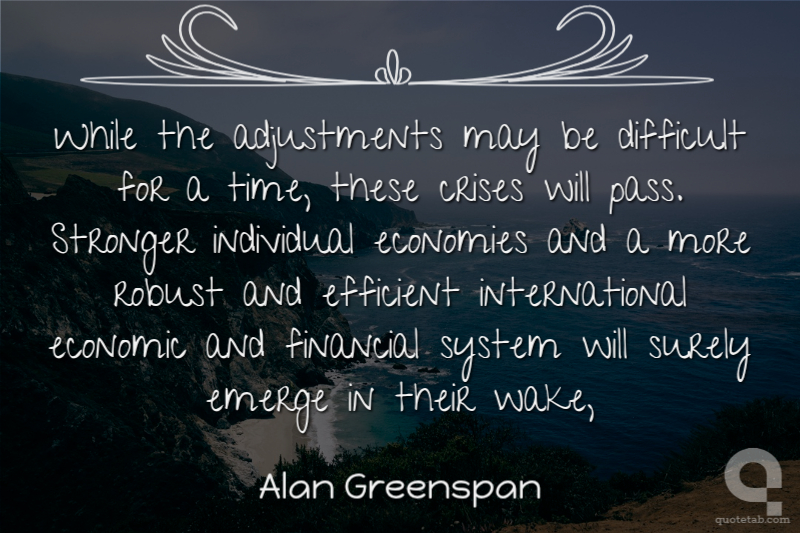 While the adjustments may be difficult for a time, these crises will pass. Stronger individual economies and a more robust and efficient international economic and financial system will surely emerge in their wake,