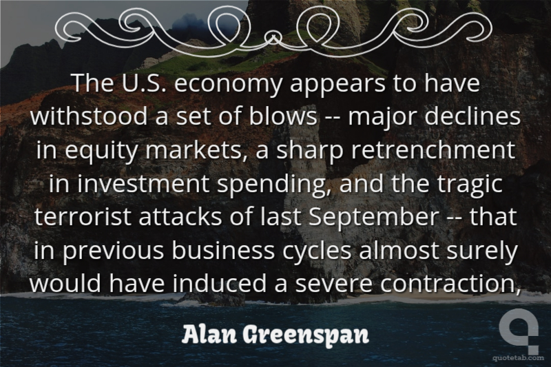 The U.S. economy appears to have withstood a set of blows -- major declines in equity markets, a sharp retrenchment in investment spending, and the tragic terrorist attacks of last September -- that in previous business cycles almost surely would have induced a severe contraction,